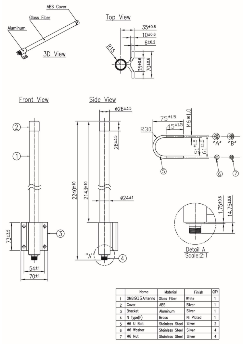 The UV-resistant fiberglass housing enables the OMB antenna to be utilized in all kinds of harsh environments, making it more robust and safer than traditional whip antennas. It has been designed to withstand a high wind load. The integrated aluminum mounting bracket is perfect for directly mounting the antenna onto a pole or a wall.