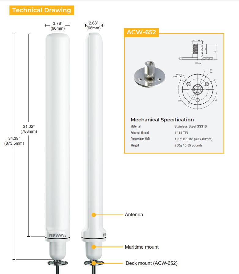 Includes everything you need for maritime and deck mounting, as well as an L-bracket for horizontal or vertical pole mounting.