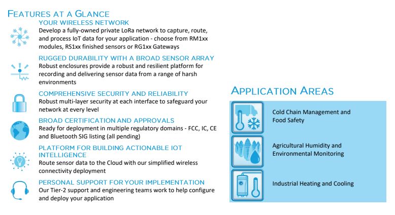 The SensorWorks-ready Sentrius RS1xx Series is a battery powered, long-range integrated sensor platform leveraging the benefits of LoRaWAN and Bluetooth Low Energy (BLE) connectivity. Its small, rugged form factor contains superior RF performance and flexibility with precise temperature and humidity sensors, and room for future expansions. At its core, the RS1xx series utilizes our field-proven and reliable RM1xx module hardware, providing LoRaWAN options in 868 MHz and 915 MHz frequencies, plus BLE for local data display, configuration, and troubleshooting. Based on the Semtech SX1272 and Nordic nRF51 silicon, it offers a LoRa range up to 10 miles with a local 2.4 GHz connectivity option to smartphones and tablets. The RS1xx Series works with our Sentrius RG1xx Series of LoRa/multi wireless gateways for simple out-of-the-box integration, and is compatible with third-party Cloud and LoRa network ecosystem partners.