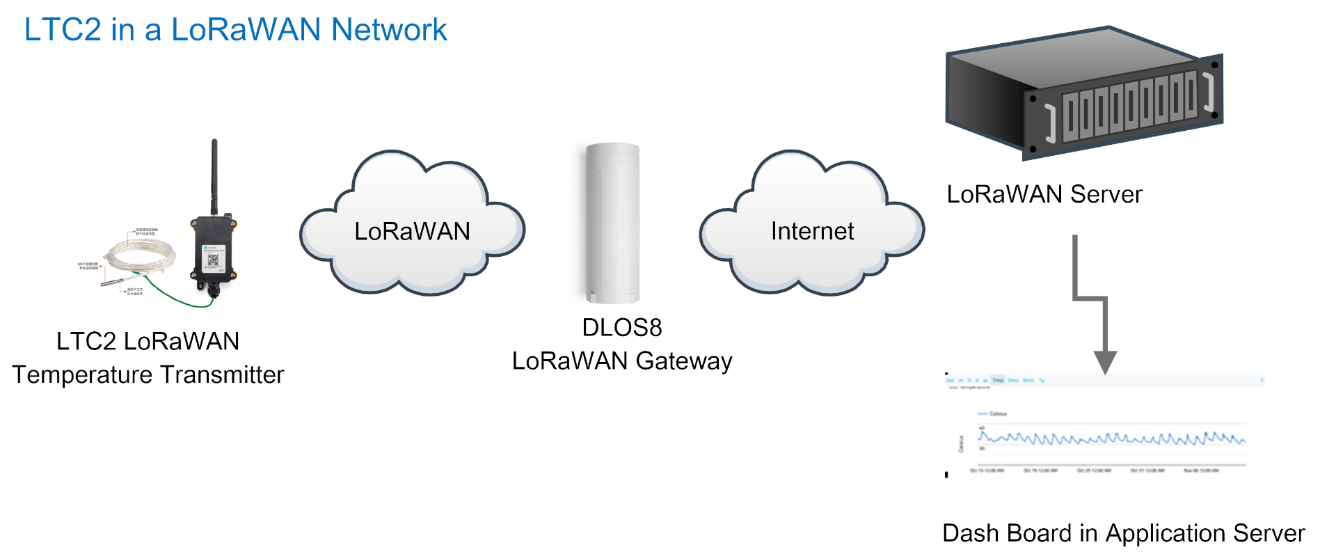 The Dragino LTC2-HT Industrial LoRaWAN Temperature Transmitter is designed to monitor high temperatures. Through a PT100 probe, the LTC2-HT measures temperature and uplinks it to the IoT server via LoRaWAN protocol.